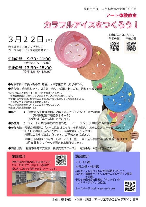 〇 春休み特別アート教室2026.3.22開催★参加者募集のお知らせ★