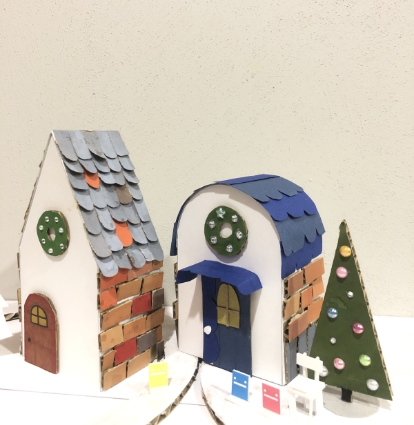 おうちにパーツを貼ったり、レイアウトをしたり、親子で協力してオリジナルのクリスマスの家を完成させよう!