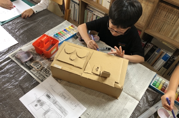 静岡県裾野市の子供向け図工教室、アトリエ奏のこどもデザイン教室の様子です。